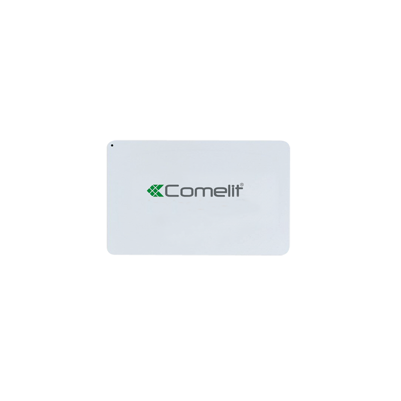 Badge elettronico di prossimità. Badge utilizzabile con i sistemi Comelit SimpleKey Basic, SimpleKey Advanced, SimpleSafe VEDO e SimpleHome dotato di chip elettronico antifalsificazione. Tecnologia MIFARE, 13,56 MHz, ISO 14443A, formato chiave fob ABS, formato carta di credito (85x54x0,8 mm).