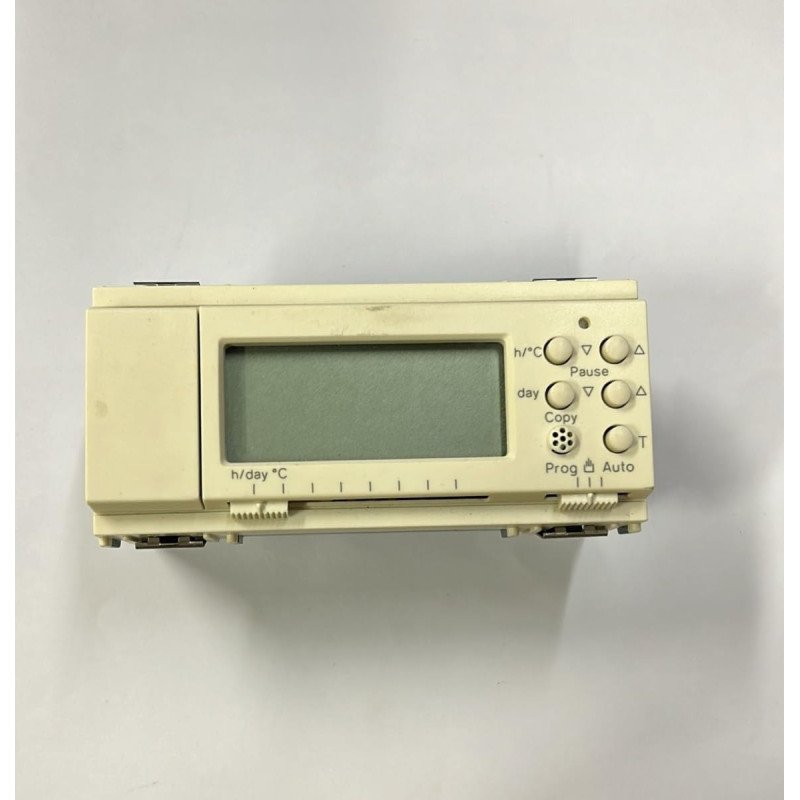 Apparecchio modulare intercambiabile "Idea" modulo 25x45 da installare a scatto a mezzo supporti in scatole rettangolari da incasso 4 moduli o 6 moudli e da completare con placche. Ha ingombro 4 moduli da 25x45 mm ciascuno. Ha grado di protezione IP41 ( norme CEI 64-8/87). Va comunque utilizzato in luoghi asciutti e non polverosi a temperatura compresa tra 0° e 40°C. È adatto a controllare la temperatura ambientale agendo sul circuito di alimentazione del bruciatore o della pompa di circolazione o sul circuito di alimentazione del condizionatore. Caratteristiche tecniche: - Involucro in policarbonato autoestinguente, ingombro 4 moduli 25x45 mm serie Idea. - Visualizzazione dati a mezzo display a cristalli liquidi 50x21mm. - Riserva di carica che permette la sostituzione delle pile senza perdita dei dati impostati. - Alimentazione con 3 pile micro stilo AAA. - Campo di regolazione delle temperature da 8°C a 40°C. - Temperatura antigelo preregolata a 8°C. - Morsetti a vite totalmente protetti per serraggio di conduttori rigidi o flessibili fino a 1.5mm2. - Contatto di uscita 2 vie senza potenziale, morsetti 1 4 2 con portata 5A 220V.
