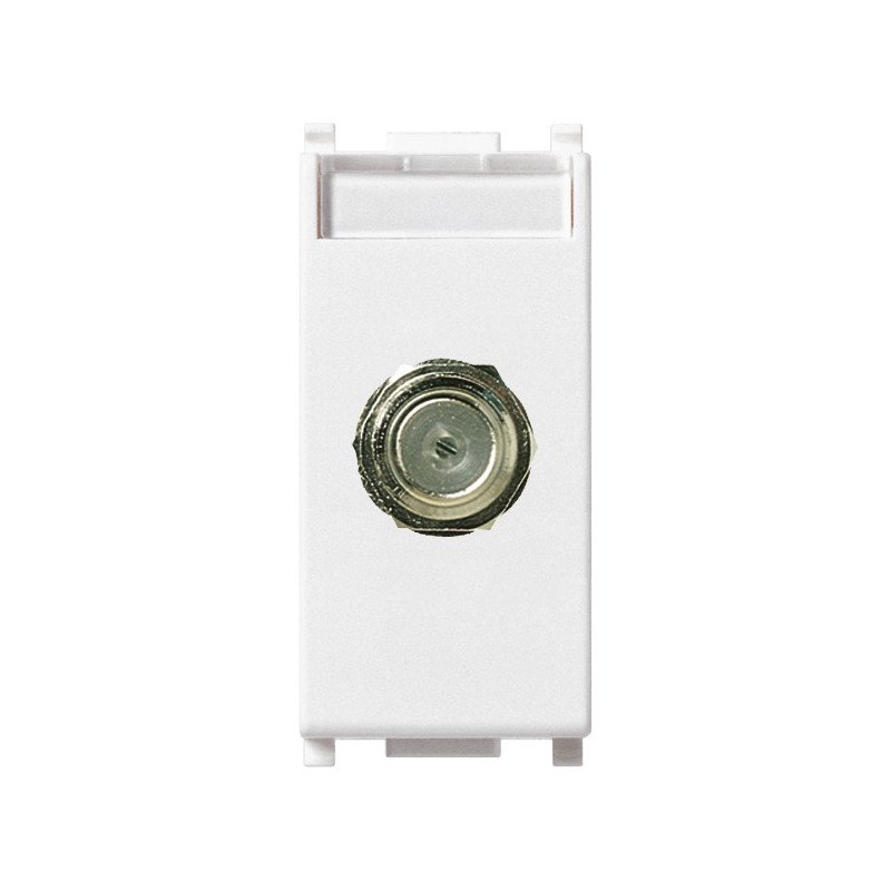 Presa coassiale con connettore femmina tipo F, bianco. Per frequenze fino 2400 MHz. Collegamento in ingresso e in uscita mediante connettore maschio tipo F 01654. Dati tecnici: Tipologia: presa d’arrivo. Copertura: senza. Numero di uscite: 1. Adatto per alimentazione remota: sì. Tipo di fissaggio: a scatto. Colore: bianco. Codice RAL: 9003. Materiale: plastica.