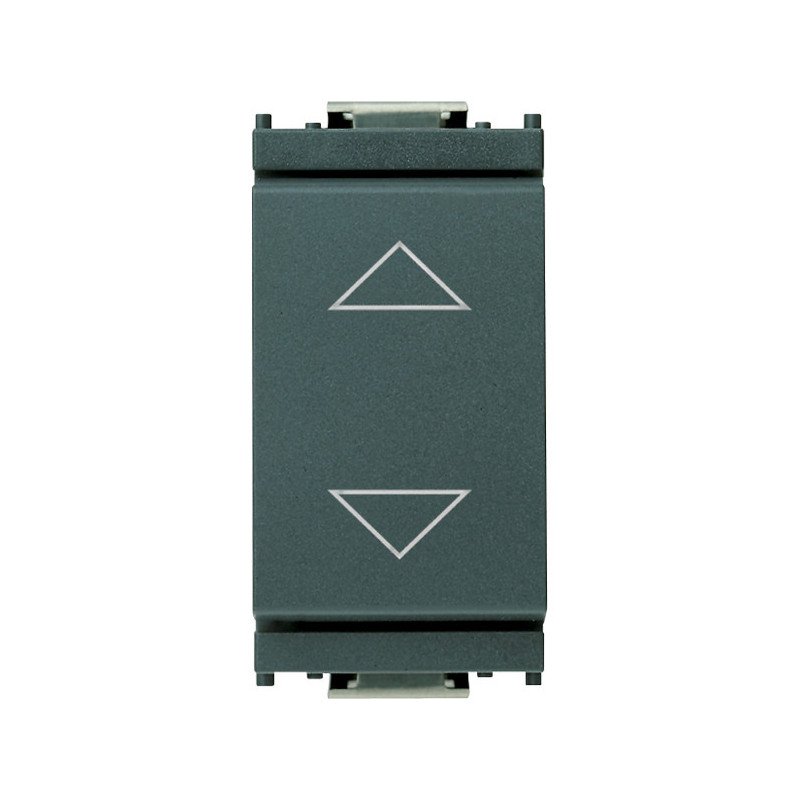 Commutatore 1P 10 AX 250 V~ (3 morsetti), con frecce direzionali e posizione OFF centrale, grigio. Max 100 W per lampade con alimentatore integrato (IEC 60669-1:2017). Dati tecnici: Composizione: dispositivo modulare per interruttori domestici. Tipo di comando: levetta singola. Numero moduli da frutto: 100. Tensione nominale: 250V. Numero di poli: 1. Corrente nominale: 10A. Tipo di montaggio e fissaggio: Incassato e bloccare in posizione. Materiale: plastica. Qualità del materiale: termoplastico. Senza alogeni: sì. Tipo superficie: opaco. Colore: grigio RAL 7015. Casella di testo/superifice marcatura: sì. Grado di protezione: IP40. Larghezza: 24,80 mm. Altezza: 50,10 mm. Profondità: 43,60 mm.