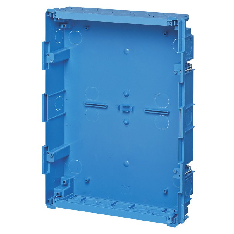 Scatola da incasso per centralino estetico 24 moduli (GW 850 °C) per pareti leggere, azzurro. Dimensioni 316x423x80 mm. Altezza 423 mm. Larghezza 316 mm. Profondità 80,00 mm. Profondità di incasso 80,00 mm. Profondità interna 78,00 mm. Numero di moduli 24. Numero di file 2. Numero moduli DIN 24. Possibilità di applicazione No. Numero di ingressi per conduttori 40. Materiale del corpo Plastica. Grado di protezione (IP) IP40. Classe di isolamento II.