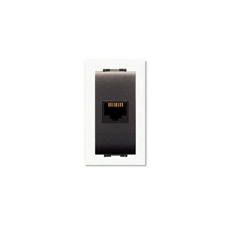 Negli ultimi anni il connettore telefonico di tipo RJ11 trova una sempre maggior diffusione sul mercato per la sua semplicità, il suo minor ingombro e per la possibilità di integrarsi con gli altri frutti e va a sostituire le classiche e più conosciute prese tripolari. CARATTERISTICHE TECNICHE: Tipo Modulo: Connettore Telefonico. Colore: Nero. Materiale: Plastica e Metallo. Marca: Elettrocanali. Serie: Life.