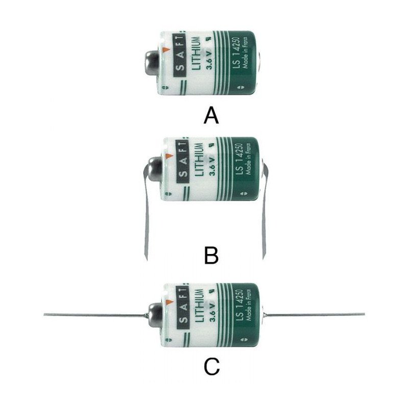 CORRENTE DI SCARICA:35 mA. TEMPERATURA DI LAVORO:-55°C÷85°C. ANODO:litio, CATODO:cloruro di tionile. Per alimentazione memorie ram e CMOS, PLC, a norme "MIL"CERTIFICAZIONI:RAQ 1 QA Sistem Certification, AQAP-1 NATO, MIL-Q-9558A, BS 5750 UK, AQF-2. Capacità batteria 1.2 Ah. Tensione 3.6V. Figura C.