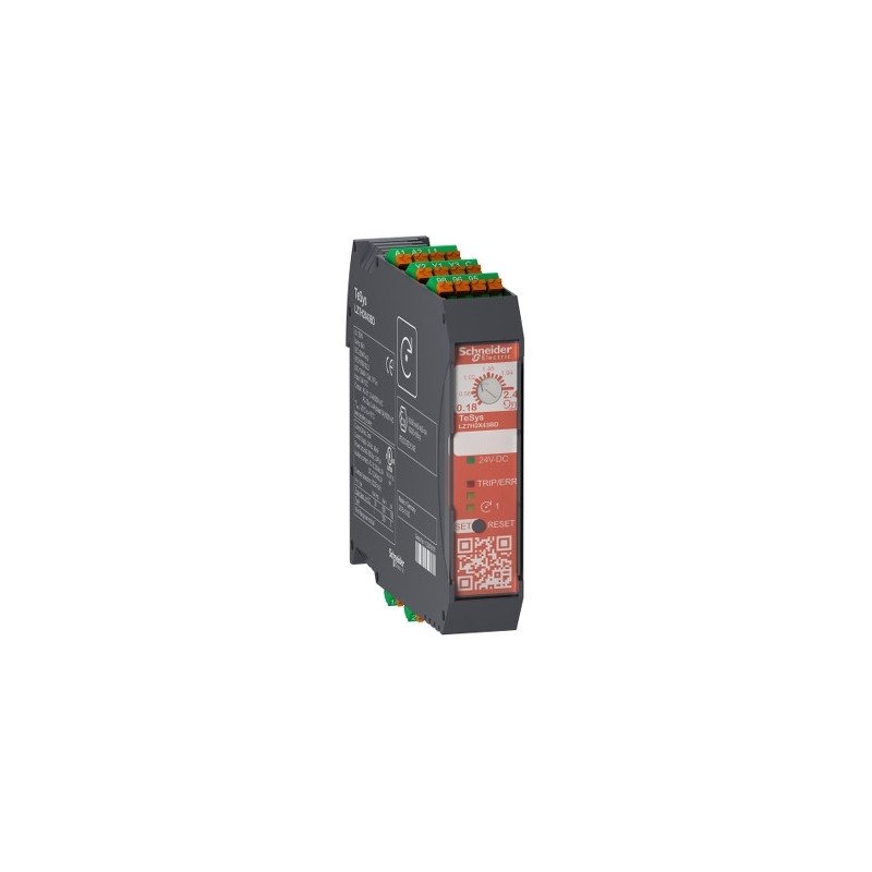 Starter di sicurezza diretto ultracompatto TeSys H, 3 poli, 2,4 A/500V AC-53, per il controllo e la protezione di motori a 3 fasi fino a 0,75kW a 400V (1 HP a 480V). La tecnologia ibrida utilizzata per i contatti di alimentazione offre una grande compattezza (22,5 mm di larghezza) e una lunga durata elettrica fino a 30 milioni di cicli AC-53. Fornisce il controllo di una direzione di rotazione, una corrente del motore regolabile 0,18-2,4 A, protezione da sovraccarico termico classe 10A con ripristino automatico/manuale/remoto. Fornisce inoltre perdita di fase e protezione da squilibrio di fase, protezione contro lo stallo e l'inceppamento del motore. Da alimentare a 24V DC, fornisce ingressi logici per ON/OFF del motore e ripristino da remoto dopo scatto termico, un relè di contatto per segnalazione di guasto, stato LED sulla parte anteriore per indicazione di scatto e funzionamento del motore. Con una funzione integrata Safe Torq Off (STO) con livello SIL3 secondo IEC61508-1 e livello PLe secondo ISO13849-1, può essere integrato nelle applicazioni della catena di sicurezza. Montaggio su guida DIN, morsetti a molla per controllo e alimentazione, può essere utilizzato senza declassamento per temperature da -25 a 70°C. Certificazione secondo più norme (IEC, UL, CCC), conforme a Green Premium (RoHS/REACh).