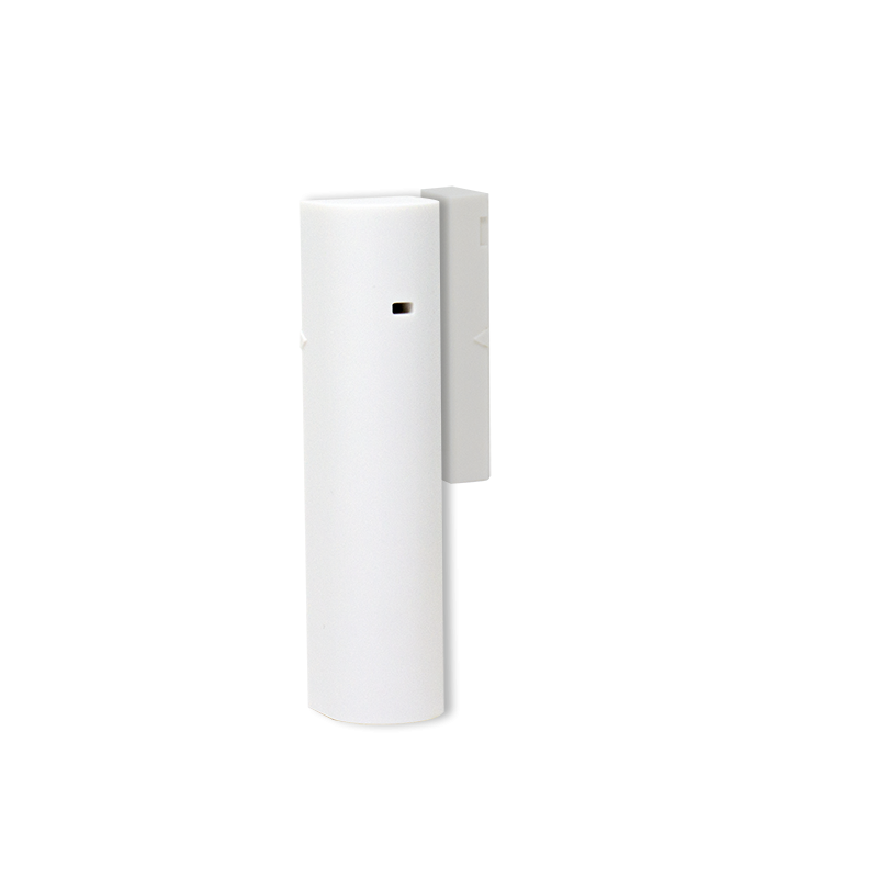 Il contatto magnetico wireless (bianco) è dotato di due ingressi ausiliari cablati per il collegamento e la trasmissione di ulteriori due zone indipendenti in centrale. Uno dei due ingressi può gestire contatti tapparella. Il contatto magnetico è dotato di due ampolle reed per un posizionamento flessibile del magnete esterno.