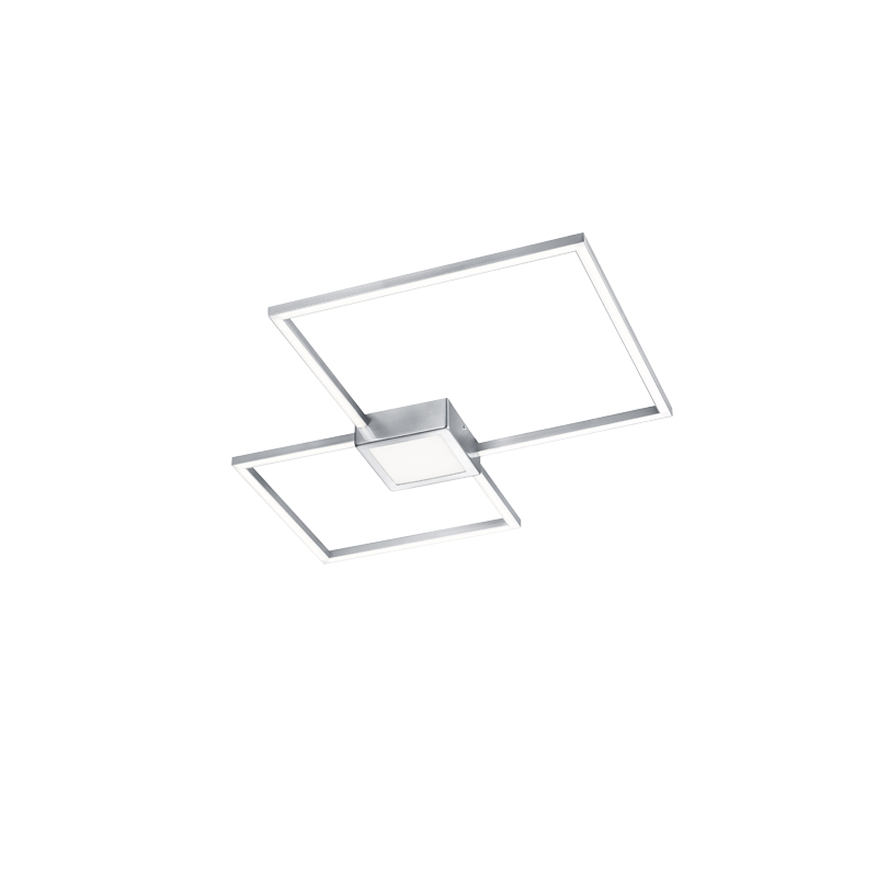 Dati tecnici: Lampadine: SMD – LED (integrato). Watt: 28W. Lumen: 1x 2600lm. Kelvin: 3000K. Resa cromatica nominale (CRI): > 80 CRI. Durata di vita 30000H. Cicli di commutazione 15000x ON/OFF. Tensione di esercizio: 230V 50Hz. Classe di protezione: 2. Grado di protezione: IP20. Dettagli: Finitura: Colore: nichel opaco. Materiale: metallo. Vetro: Colore: bianco. Materiale: Acrilico. Dimensioni: Larghezza: 65 cm. Altezza: 5 cm. Profondità: 65 cm. Caratteristiche prodotto: - Luminosità non regolabile. – Dimmerabile tramite interruttore. – Montaggio sia a parete che a soffitto.