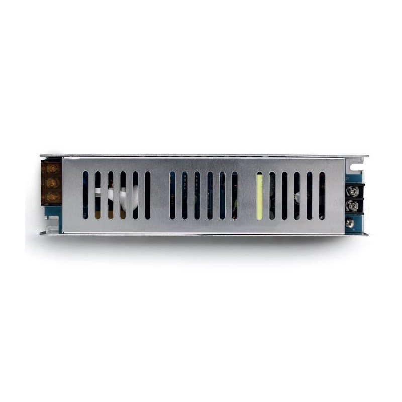 Alimentatore modello Ledco TR24250. Si tratta di un alimentatore con una potenza pari a 250 W. Questo è uno dei prima fattori da valutare prima di acquistare un trasformatore. Gli alimentatori devono infatti avere una potenza superiore del 20% rispetto al wattaggio effettivo della striscia led. A titolo di esempio, una strip led da 10W/m lunga 10 metri avrà bisogno di un alimentatore con potenza di 120 W. Le sue dimensioni sono le seguenti: 223,4 mm di lunghezza, 66,9 mm di larghezza e 39,9 mm di altezza. Il trasformatore ha un voltaggio di DC 24V ed un amperaggio di 10A. Il grado di protezione è di IP20. Questo indice rivela che può essere usato in un ambiente interno. L’alimentatore viene progettato offrendo un elevato grado di sicurezza, essendo provvisto di protezione da sovraccarichi e cortocircuiti ed essendo dotato di regolatore di tensione. Può essere connesso facilmente alle strisce led grazie ai morsetti a vite frontali. Può inoltre essere utilizzato per alimentare altri apparecchi elettronici come router, hub, telecamere di sicurezza, impianti audio-video ecc.