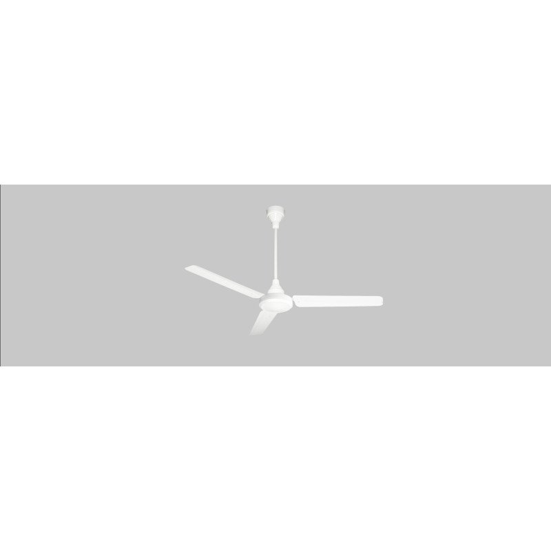 Ventilatori da soffitto di colore bianco. Possibilità di inversione del senso di rotazione delle pale. L’utilizzo sia estivo che invernale del ventilatore rende più omogenea la temperatura dell’ambiente. Indicati per la destratificazione dell’aria. Disponibili con Ø pale da 90, 120, 140 e 150 cm. Corpo motore in pressofusione d’alluminio. Motore su cuscinetti a sfera per una lunga durata. Velocità regolabile tramite regolatore opzionale. Specifiche tecniche: Dimensioni: Diametro pale: 150cm. Altezza: 32cm. Altezza complessiva: 39cm. Tensione: 230V. Frequenza: 50Hz. Portata minima m3/h: 16000. Potenza: 62W.