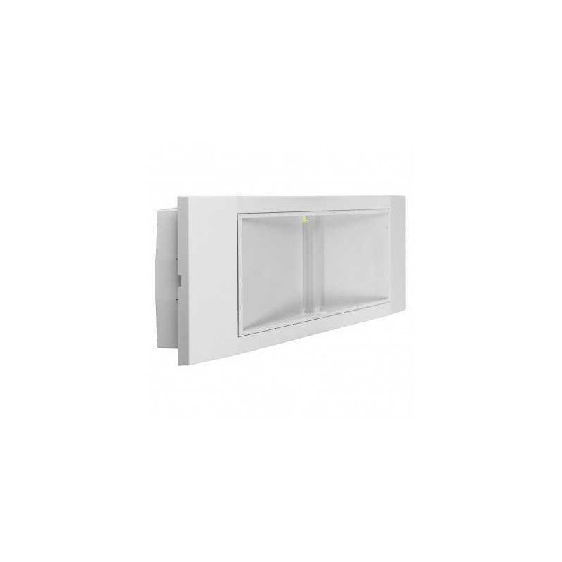 Apparecchio per illuminazione di emergenza, idoneo per installazione in ambito terziario. Ottica simmetrica per installazioni sia a plafone che a parete. Grazie alla disponibilit… di autonomia molto elevate, l'apparecchio Š particolarmente idoneo ad aree soggette a black out prolungati (fino a 8 h). - Apparecchio predisposto per incasso con autonomia fino ad oltre 8h. - L'ampia dotazione di accessori consente di utilizzare un solo apparecchio per incasso, bandiera e cartongesso. - L'installazione ad incasso prevedere una scatola in dotazione, per il montaggio a plafone il corpo Š predisposto con numerosi ingressi in prerottura per consentire l'ingresso di canaline da ogni direzione. - Applicazioni: Terziario, attivit… commerciali, negozi, ristoranti e uffici. - Tempo di ricarica: 12h con batteria LiFe. Specifiche tecniche: - Potenza 11W. - Autonomia 1h. - Tecnologia a LED. - Alimentazione 230V. - Grado di protezione IP40. - Colore corpo Bianco RAL 9003.