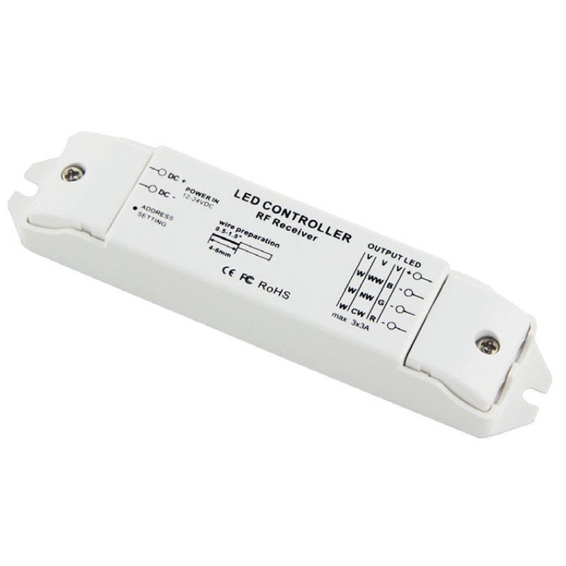Ricevitore Multizona Eco con marchio Ledco modello CT780. Il dispositivo in questione è creato appositamente per far funzionare contemporaneamente le strisce Led installate fino a 4 zone. È ideato per essere abbinato ad uno dei telecomandi come quello quello RGB, al telecomando bianco dinamico o al telecomando dimmer. Vediamo più nel dettaglio alcune sue caratteristiche tecniche. Le sue dimensioni sono le seguenti: 135 mm di lunghezza, 30 mm di larghezza e 20 mm di altezza. Il corpo e la struttura del ricevitore sono in PVC. L’installazione può avvenire a plafone, a parete e a incasso. Non è incluso in telecomando e non è incluso l’alimentatore. Il suo utilizzo multifunzionale ci permetterà l’utilizzo delle strip Led (12/24V strip monocromatiche, dinamiche, RGB e RG.W) contemporaneamente fino a 4 zone. Per il funzionamento della serie Eco occorre un telecomando a scelta tra quelli sopraelencati e questo modello di ricevitore per ogni zona da controllare fino ad un massimo di 4 zone. Per il controllo completo occorre uno smartphone con sistema IOS o Android. Il controllo mediante questa serie Eco permette di beneficiare dei reali vantaggi offerti dai sistemi, come il risparmio energetico, il comfort visivo ed il controllo personale, senza dover creare un’infrastruttura cablata. E’ possibile spegnere le luci dei dispositivi elettronici da qualunque posizione, una comodità davvero impagabile, garantendo nello stesso tempo una maggiore sicurezza. Tra le comodità offerte, c’è quella legata al fatto che possiamo programmare l’accensione delle luci ad orari specifici, consentendoci anche di sincronizzare le luci e i dispositivi con il nostro smartphone. Grazie al suo utilizzo vengono ridotti i costi energetici. La potenza in uscita è di 12V- 108W/ 2V – 216W, la corrente in uscita è di MAX 9A (3A x 3 Canali). Il grado di protezione è di IP20, potendo essere installato in un ambiente interno. Ha una temperatura d’esercizio compresa tra i -20 ° + 50°.