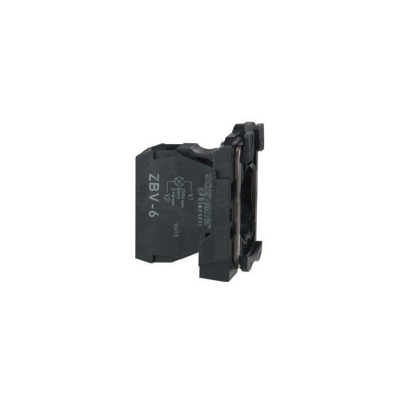 L'elemento luminoso Harmony XB4 di Schneider Electric senza lampadina funziona con l'attacco BA9s. È alimentato con 250 V AC/DC e utilizza morsetti a vite. Ha un corpo di plastica. È compatibile con Harmony XB4 e XB5. Questo elemento luminoso permette di sostituire e configurare facilmente e rapidamente le unità di segnalazione. Può essere facilmente installato e sostituito su unità di selezione o pulsanti luminosi compatibili tramite clip e collegato con semplici collegamenti a vite. Permette di distinguere visivamente le unità di segnalazione attraverso l'illuminazione, collegandolo al LED integrato su attacco BA9s. Protegge gli operatori da contatti inattesi con circuiti in tensione grazie al suo indice di protezione IP20. Nome dispositivo ZBV. vendita quantità indivisibile 5. Connessioni - morsetti Morsetti di fissaggio a vite, <= 2 x 1,5 mm² con estremità cavo conforme a IEC 60947-1. Morsetti di fissaggio a vite, > = 1 x 0,22 mm² senza estremità cavo conforme a IEC 60947-1. tipo di segnalazione Fisso. Sorgente luminosa Lampadina non inclusa. Attacco lampada BA 9s. Alimentazione elemento luminoso Diretto. Tensione alimentazione nominale [Us] <= 250 V.