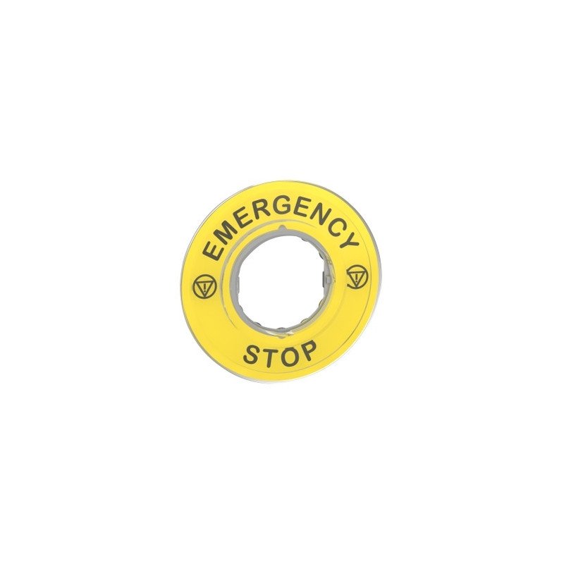 L'etichetta circolare Harmony di Schneider Electric è gialla. È compatibile con Harmony XB4 e XB5, ha un diametro di 60 mm ed è contrassegnata dalla scritta "EMERGENCY STOP". Questa etichetta circolare indica chiaramente i dispositivi per l'arresto d'emergenza. Viene fornita già incisa con una marcatura relativa al funzionamento macchina ed è compatibile con qualsiasi unità standard di arresto o spegnimento d'emergenza Harmony.