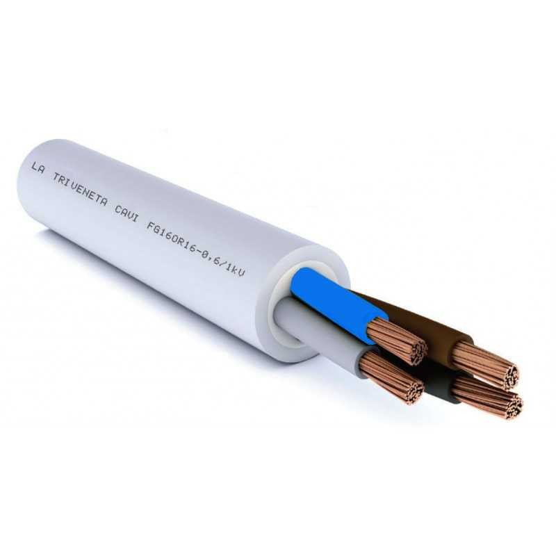 Cavo multipolare per energia isolato in gomma etilenpropilenica ad alto modulo di qualità G16, sotto guaina di PVC, con particolari caratteristiche di reazione al fuoco e rispondente al Regolamento Prodotti da Costruzione(CPR). 4 conduttori. 16 mmq. Conduttore: Corda flessibile di rame rosso ricotto, classe 5. Isolante: Mescola di gomma etilpropilenica ad alto modulo di qualità G16. Guaina esterna: Mescola di PVC di qualità R16. Tensione nominale Uo/U: 0.6/1kV. Temperatura massima di esercizio: 90°C. Temperatura minima di esercizio: -15°C. Cca-s3,d1,a 3IEMMEQU EFP.