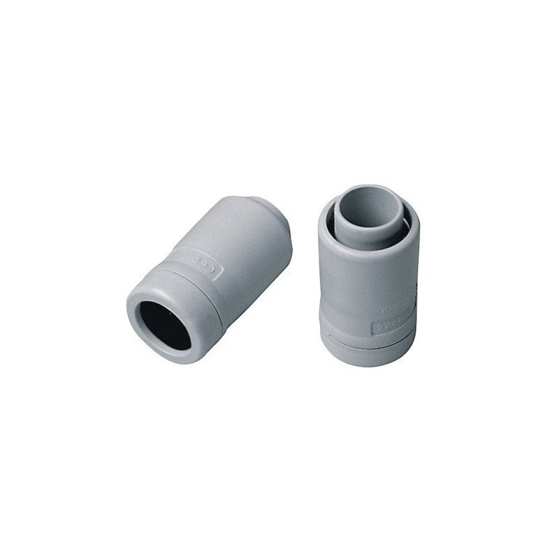 Raccordo tubo-guaina con sistema di bloccaggio della guaina spiralata nel raccordo. Anello interno di tenuta morbida per compensazione tolleranze sui tubi. Realizzato in tecnopolimero antiurto a base di PVC rigido. Prodotto in conformità alla norma EN 61386-1,EN 61386-21. Sistema e modello brevettati. Scheda tecnica: Diametro: 16 mm. Lunghezza: 16 mm. Materiale utilizzato: tecnopolimero antiurto a base di PVC rigido. Grado di protezione: IP67. Colore: Grigio RAL 7035.