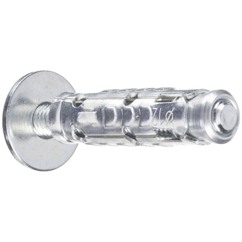 Ancorante ad espansione maggiorata per fissaggi pesanti, su calcestruzzo e materiali compatti resistenti. Versione in acciaio zincato e con vite esagonale. - Il corpo a 4 settori indipendenti garantisce una distribuzione dei carichi radiale e uniforme, per ridotti interassi e distanze dai bordi. - Le alette antirotazione assicurano una posa facile corretta e rapida. - Speciale geometria del cono per un perfetto aggancio al corpo senza rischi in installazione. - Gamma completa, con diversi accessori di fissaggio, per ogni necessità applicativa. - Disponibile anche in acciaio inox. Diametro filettatura ancorante: M6. Lunghezza ancorante: 45mm. Lunghezza filettatura ancorante: 55mm. Diametro foro: 10mm. Min profondità di foratura: 55mm. Min Profondità di ancoraggio: 35mm. Max spessore fissabile: 5mm.
