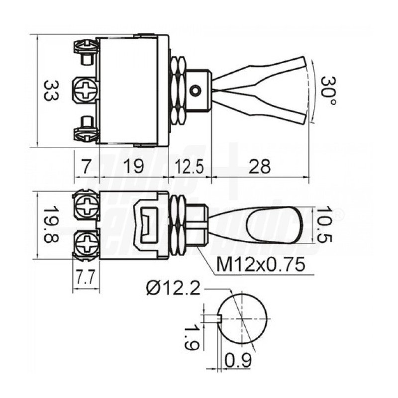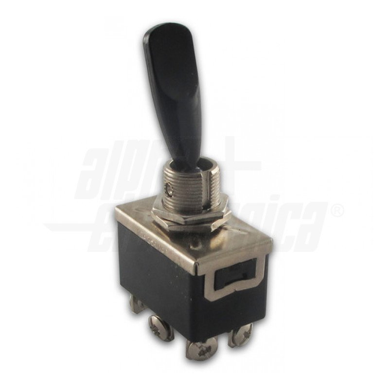 Interruttore deviatore Medio - 2P - DPDT - ON/ON - 10A@250V - 6 term. vite. Attuatore Levetta. Foro fissaggio 12.2mm. Luminoso no. Materiale attuatore Plastica. Montaggio Pannello con dado. Numero poli 2. Numero terminali 6. Portata 10A@250V/15A@125V. Serigrafia Nessuna. Stato dei contatti ON/OFF. Tipi contatti DPDT. Tipo terminale vite.