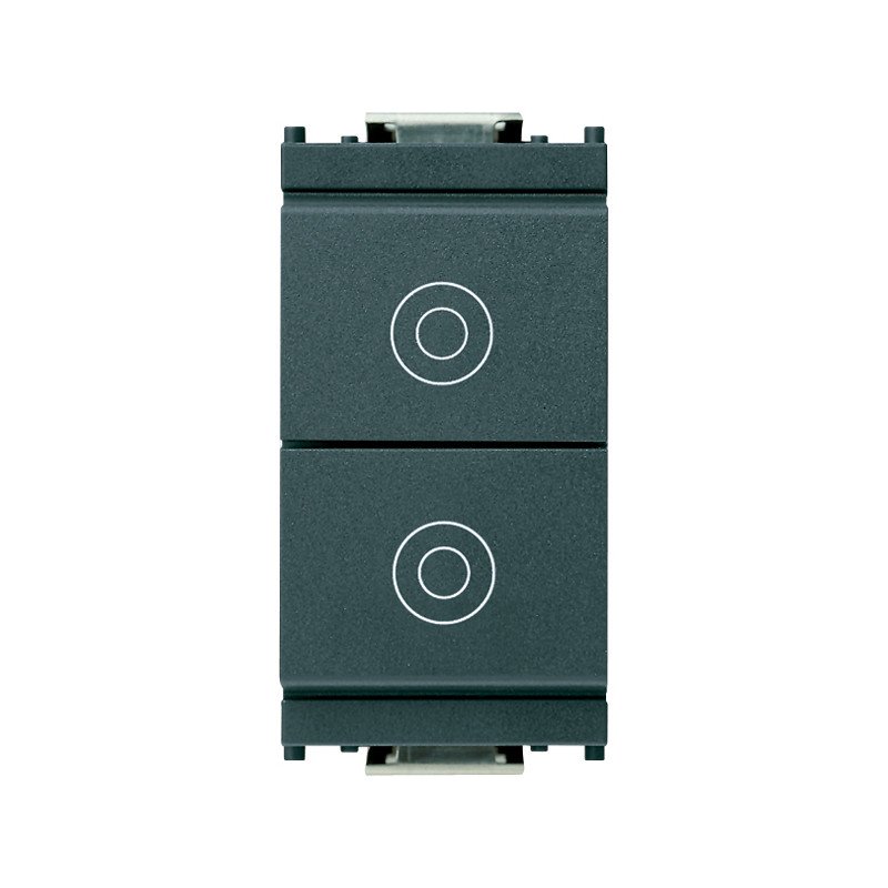 Due pulsanti indipendenti 1P NO + 1P NO 10 A 250 V~, grigio. Consentono la chiusura contemporanea dei due circuiti e quindi non sono adatti all'inversione di marcia di motori (tapparelle, cancelli, ecc.). Materiale: plastica. Tipo di montaggio: incassato. Senza alogeni: s�. Tipo superficie: opaco. Colore: grigio. Codice RAL: 7015. Classe di protezione: IP40. Larghezza: 24.80mm. Altezza: 50.10mm. Profondit…: 38mm.