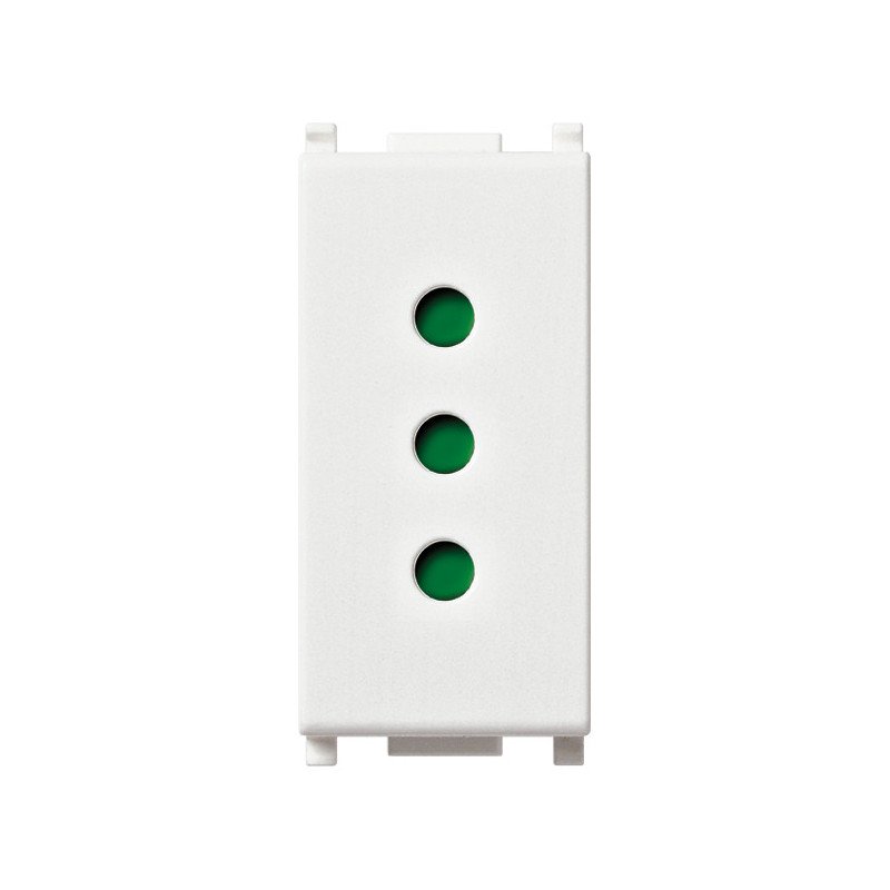 Presa SICURY 2P+T 10 A 250 V~ standard italiano tipo P11, bianco. Dati tecnici: Tipologia: tipo italiano P11. Numero di unità e moduli da frutto: 1. Tipo di collegamento: morsetto a vite. Con protezione dal contatto incrementata: sì. Casella di testo/superficie di marcatura: sì. Colore: bianco. Codice RAL: 9003. Tipo di montaggio: incassato. Materiale e qualità: plastica, termoplastico. Senza alogeni: sì. Tipo superficie: lucido. Corrente nominale: 10 A. Tensione nominale: 250V. Frequenza: 50/60Hz. Adatto per classe di isolamento IP20. Dimensioni: Larghezza dell’apparecchio: 22,30 mm. Altezza dell’apparecchio 49 mm. Profondità dell’apparecchio: 24 mm.
