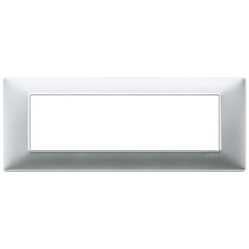 Placca 7 moduli, tecnopolimero, argento opaco. Dati tecnici: Gruppo Dispositivi di commutazione domestici. Classe Placca. Numero di unità 7. Direzione di montaggio Orizzontale e verticale. Numero di unità orizzontali 7. Numero di unità verticali 1. Numero dei moduli in orizzontale (per costruzione modulare) 7. Numero dei moduli in verticale (per costruzione modulare) 1. Con cornice di montaggio Sì. Adatto per scatola di canale sotterraneo Sì. Adatto per canale da incasso per apparecchi Sì. Adatto per installazione ad incasso Sì. Casella di testo/superficie di marcatura Sì. Materiale Plastica. Qualità del materiale Materiale termoplastico. Senza alogeni Sì. Protezione della superficie Laccato. Tipo superficie Lucido. Colore Argento. Codice RAL (simile) 9006. Trasparente No. Con coperchio a cerniera No. Grado di protezione (IP) IP00. Tipo di fissaggio Fissaggio a morsetto. Larghezza 206,00 mm. Altezza 80,00 mm. Profondità 9,00 mm. Larghezza di montaggio 206,00 mm. Altezza della parte incassata 80,00 mm. Diametro del foro (apertura) 0 mm.
