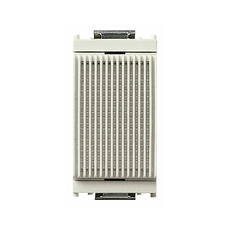 Suoneria 12 V~ (SELV) 50 Hz 8 VA, bianco. Dati tecnici: Gruppo Apparecchi di segnalazione ottica ed acustica. Classe Suoneria. Colore del corpo Bianco. Materiale del corpo Plastica. Volume 70 dB. Tensione nominale 12,00 - 12,01 V. Grado di protezione (IP) IP30. Tipo di corrente AC. Batteria incorporata No. Tipo di montaggio Incassato. Numero moduli DIN 1. Wireless No.