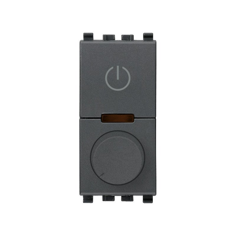 Regolatore universale 230 V~ 50 Hz a taglio di fase, per lampade ad incandescenza 40-500 W, trasformatori elettronici 40-300 VA, lampade CFL 10-200 W, lampade LED 3-200 W, per alimentatori elettronici LED a taglio di fase, comando ON/OFF con pulsante incorporato o da più punti con pulsanti NO, regolazione con potenziometro rotativo incorporato, funzione MASTER per 20137, regolazione intensità luminosa minima, individuazione al buio, grigio. Apparecchio non installabile nei contenitori Isoset.