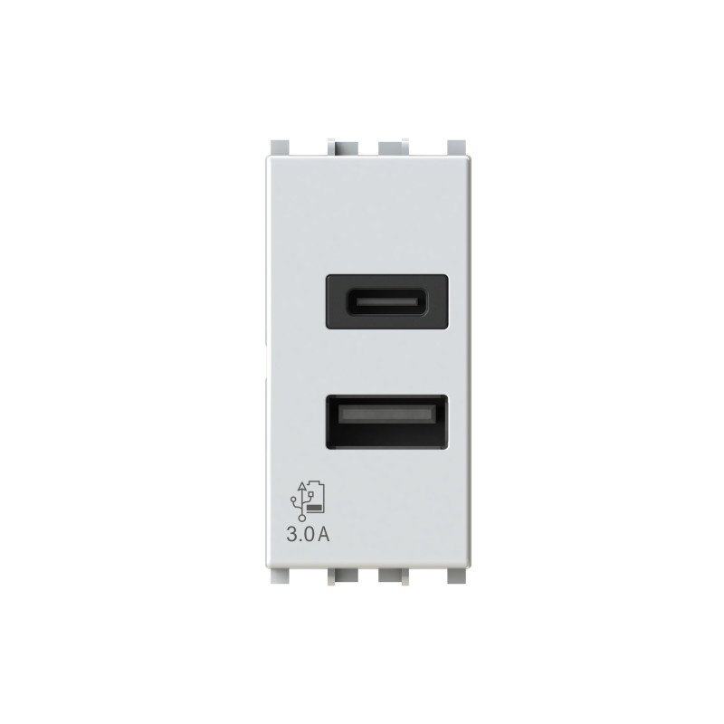 USB3.0 è il caricatore USB per serie civile con un carico massimo in uscita di 3.0 Ampere a due uscite su modulo singolo, dotato di connettore di tipo A e tipo C. Ideale per la ricarica veloce di smartphone, tablet, e altri dispositivi senza l’ingombro degli alimentatori. Alimentazione 110-230 V 50-60 Hz. Informazioni aggiuntive: Peso 50g. Dimensioni 5.0X2.2X4.5CM. Brand compatibile: Vimar. Tipologia USB.