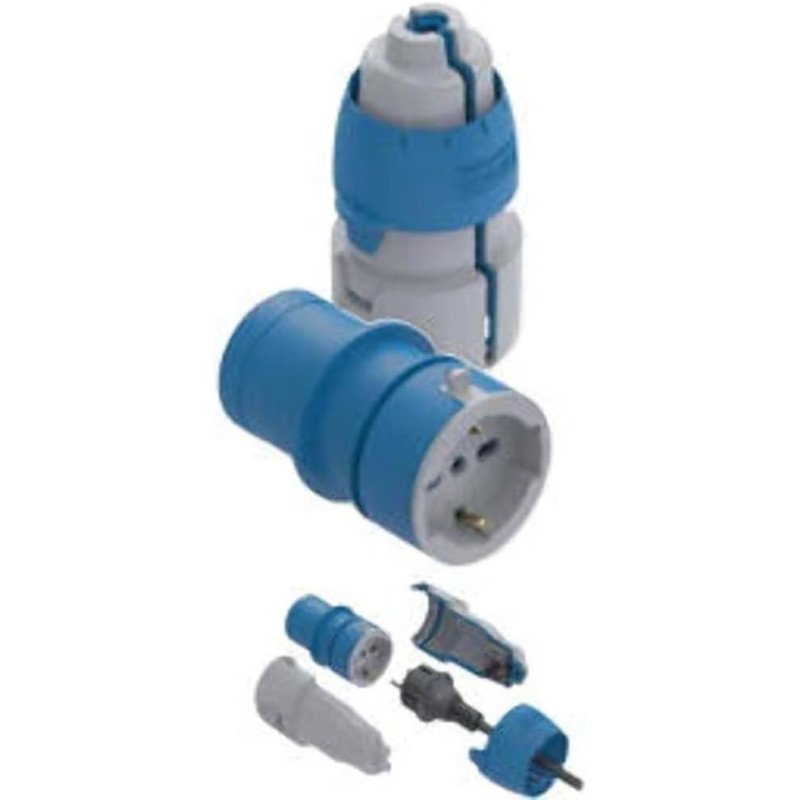 Faeg Matrioska System composto da guscio + adattatore art.FG23209. Guscio robusto ed ergonomico che montato sull'adattatore da CEE a bipasso/schuko, lo trasforma in una spina IP44 CEE industriale 250V 2P+T. Permette l'impiego di spine civili anche all'esterno. Le caratteristiche di robustezza e grado di protezione IP44, la rendono idonea a cantieri, campeggi, mercati e in ambiti industriali in genere. Grazie al meccanismo di chiusura e apertura robusto, rapido e sicuro, unitamente allo speciale fermacavo autoadattante ed alla sua speciale guarnizione costampata, garantisce nel tempo la protezione alla pioggia (IP 44). Permette molteplici applicazioni, fra le quali la possibilità di utilizzare utensili elettrici con spina civile, senza sostituirla, in prese CEE industriali.