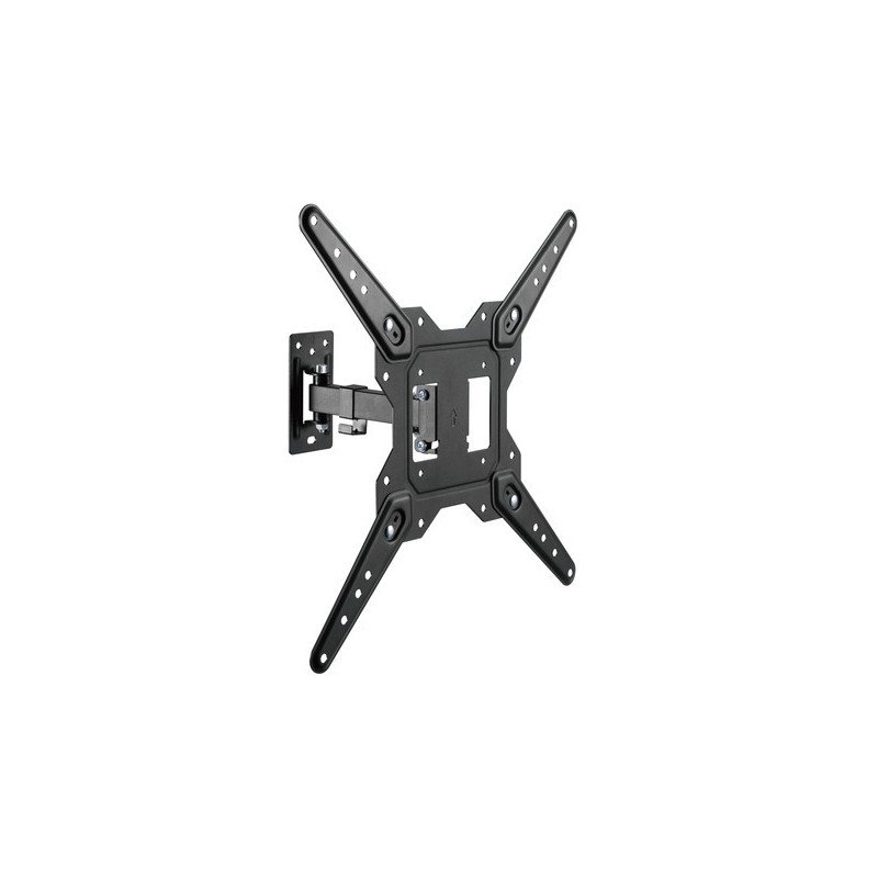 Supporto TV Orientabile, 23"-55". Funzionalit? Orientabile. Tipologia montaggio Da parete. Portata 30 Kg. Colore Nero Rotazione (Pivot) 0?. Compatibilit? VESA Max 400x400 mm. Tipologia montaggio Da parete. Estensione Braccio singolo. Compatibilit? VESA 100x100, 100x200, 200x100, 200x200, 300x200, 300x300, 400x200, 400x300, 400x400. Funzionalit? Orientabile. Inclinazione (Tilt) -8? +5?. Caratteristiche Meccaniche: Avanzamento TV Manuale. Kit di montaggio Incluso. Bolla di livello No. Lunghezza braccio piegato 208 mm. Distanza dal muro 6 cm. Materiale Acciaio. Gestione cavi Si. Innesto a baionetta No. Sistema di bloccaggio No.