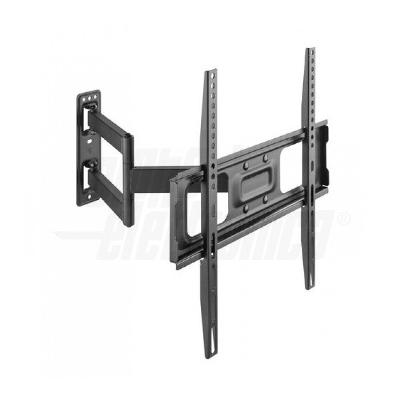 Supporto TV orientabile, 32"-55". Funzionalità Orientabile. Tipologia montaggio Da parete. Portata 35 Kg. Colore Nero. Rotazione (Pivot) -3° +3°. Compatibilità VESA Max 400x400 mm. Tipologia montaggio Da parete. Estensione Braccio doppio. Compatibilità VESA 75x75, 100x100, 100x150, 100x200, 150x100, 150x150, 200x100, 200x200, 300x200, 300x300, 400x200, 400x300, 400x400. Funzionalità Orientabile. Inclinazione (Tilt) -15° +5°. Caratteristiche Meccaniche: Avanzamento TV. Manuale Kit di montaggio Incluso. Bolla di livello No Lunghezza braccio piegato 485 mm. Distanza dal muro 8,2 cm Materiale Acciaio. Gestione cavi Si. Innesto a baionetta No. Sistema di bloccaggio No.