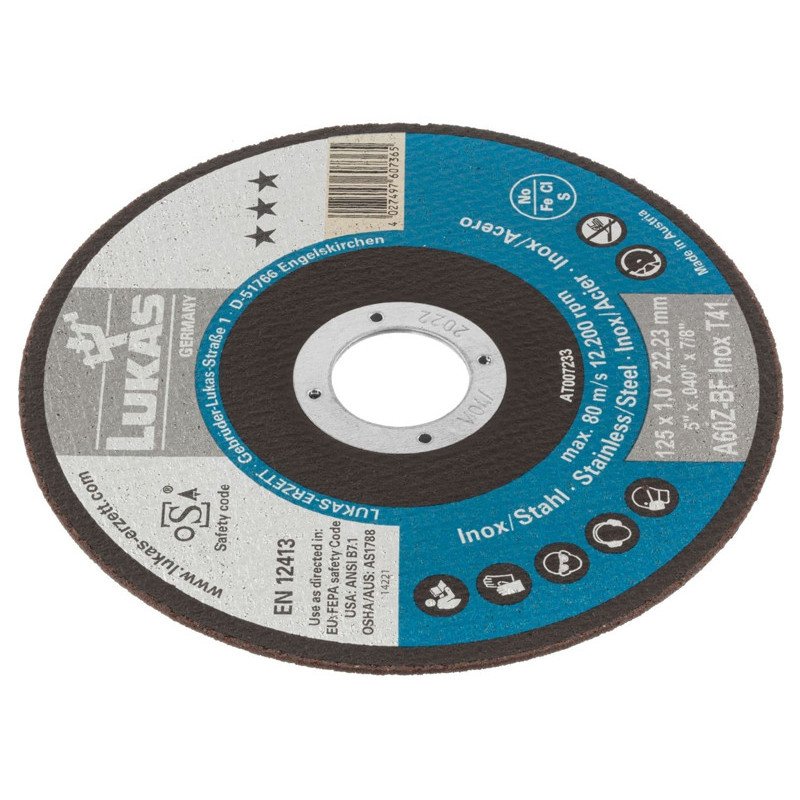 Rinforzati con fibre di vetro ad alta resistenza per la massima sicurezza e stabilità durante l'uso. Ottima adesione tra la grana e il legante resinoide per proprietà di taglio notevolmente migliorate. Processi di produzione ottimizzati e rispettosi delle norme ecologiche, con odore e polvere ridotti ai minimi livelli durante l'utilizzo quotidiano. Massima durata e prestazioni di taglio superiori - Elevato potere abrasivo. Bilanciati staticamente e dinamicamente - Velocità periferica d’uso 80 m/s. Tipo piano per troncare acciaio inossidabile - INOX.