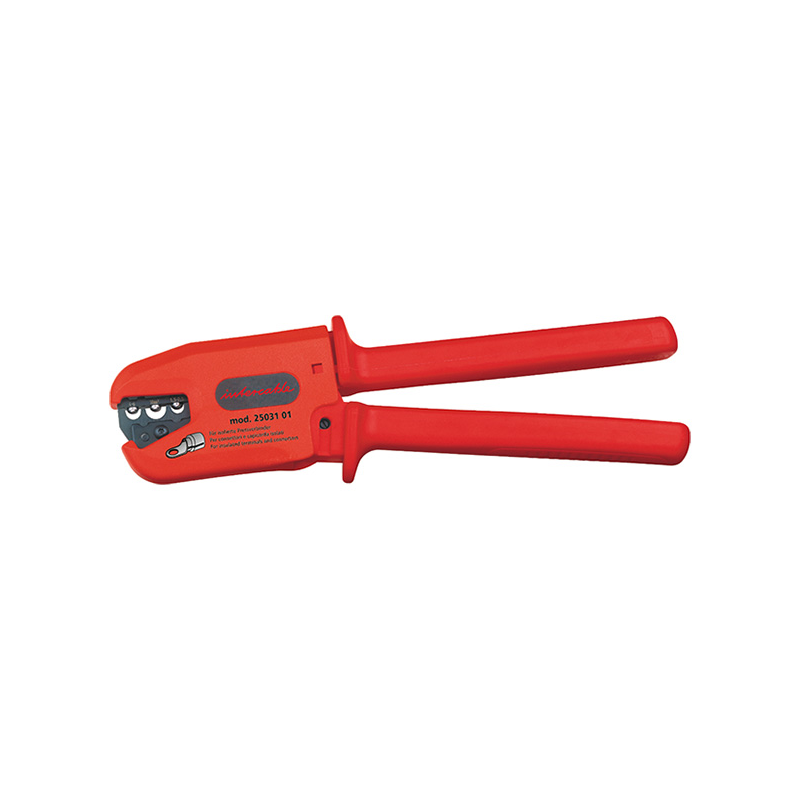 Idonea per la compressione di capicorda e giunti preisolati e/o non isolati. Idonea anche per lavori sotto tensione fino a 1000V AC e 1500V DC, Caratteristiche: dispositivo di fine corsa per il controllo della compressione apertura automatica dei manici solo a compressione ultimata, forza necessaria per la compressione estremamente ridotta, dispositivo di emergenza: consente la riapertura della pinza prima della sua chiusura totale (operazione eseguibile solo con giravite isolato), zona di compressione predefinita e marcata in base alle sezioni, testa della pinza (ad eccezione della zona di pressatura) completamente protetta con materiale isolante contro i contatti accidentali, pinza adatta anche per impieghi a temperature molto basse fino a -40°C, manici secondo la Normativa EN 60900. Informazioni: - Adatto per capicorda e connettori. - Esecuzione/azionamento meccanico. - Stampo per pressatura altri. - Con dispositivo di blocco (per utensili meccanici). - Sezione massima 16. - Sezione minima 6.